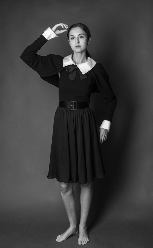 Vestido negro puños y cuello blancos