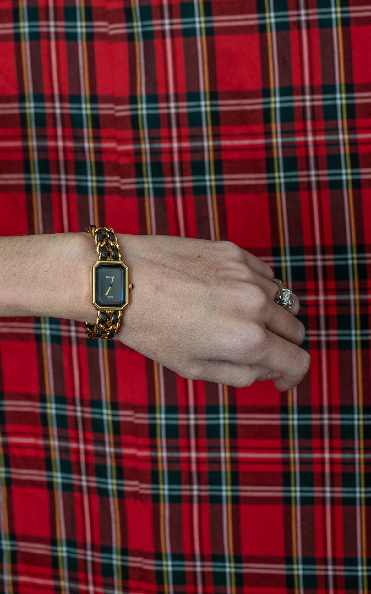 En 1987, CHANEL creó su primer reloj para mujer: el PREMIÈRE, inspirado en los códigos de la Maison. Su caja octogonal evoca el tapón del frasco de perfume N°5. El brazalete original, entrelazado con piel, como la cadena del icónico bolso matelassé.