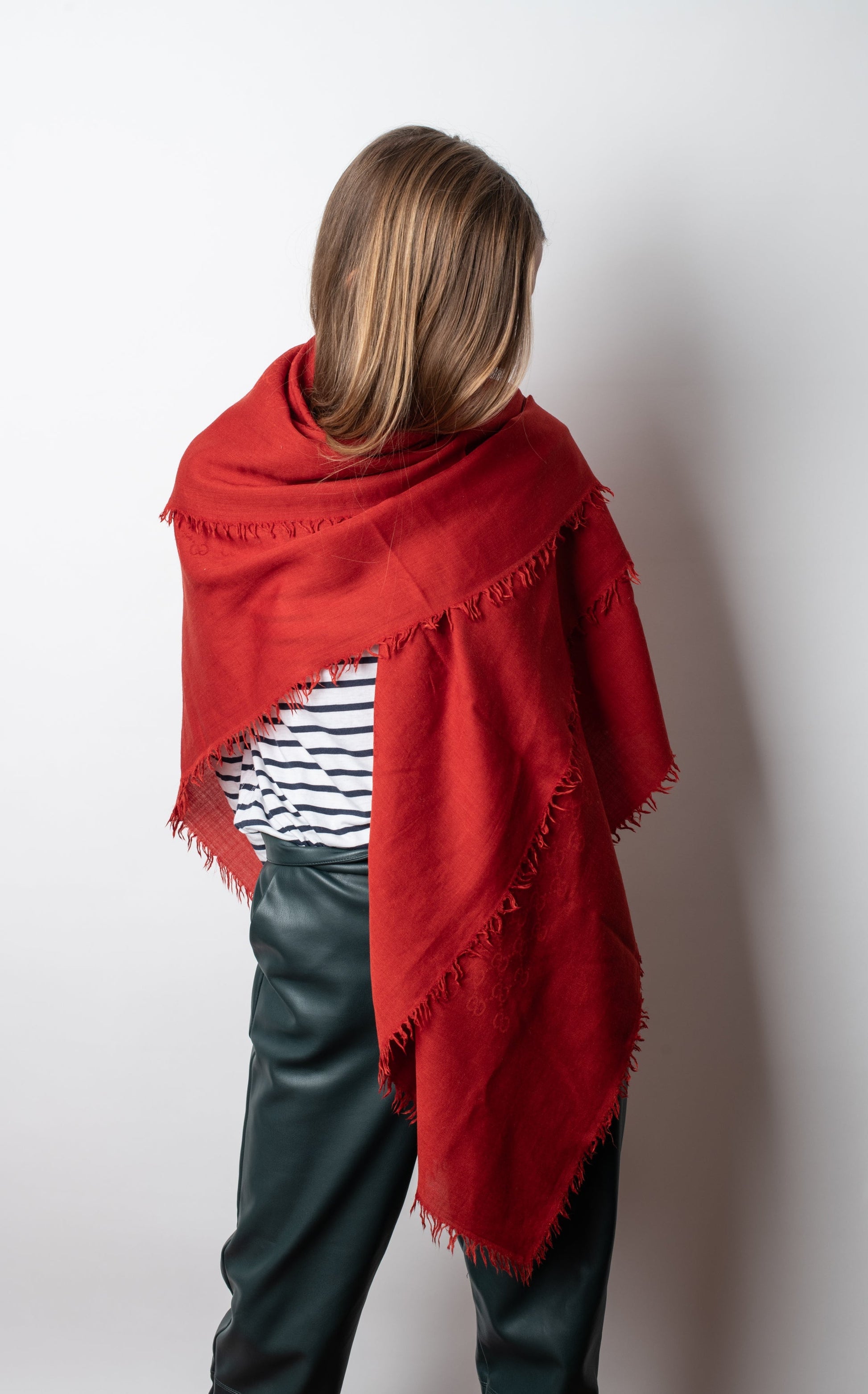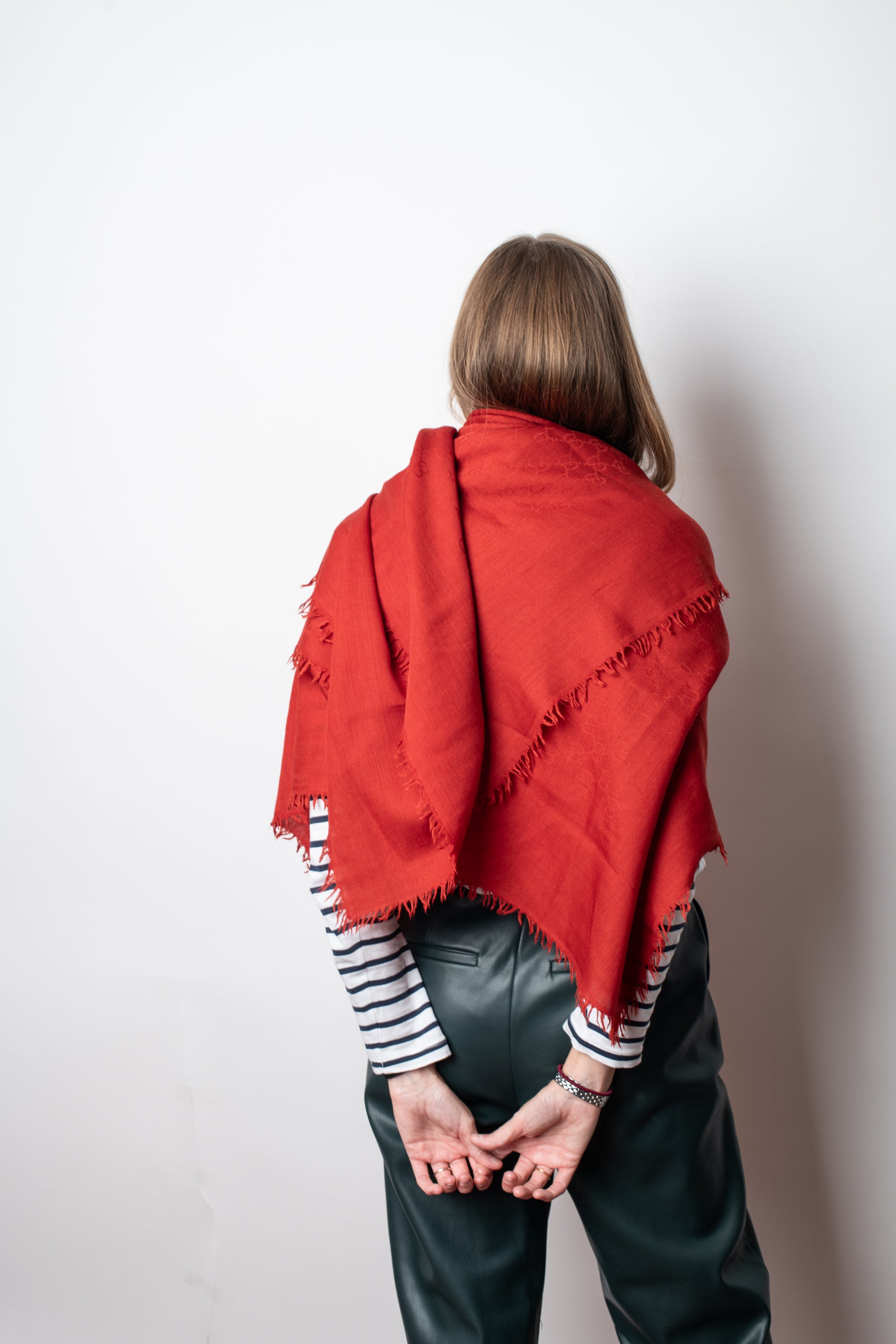 Talla - 123x133 cm // Muy buen estado, sin signos de uso salvo que la dueña cortó la etiqueta de composición // Material - Cashmere y seda