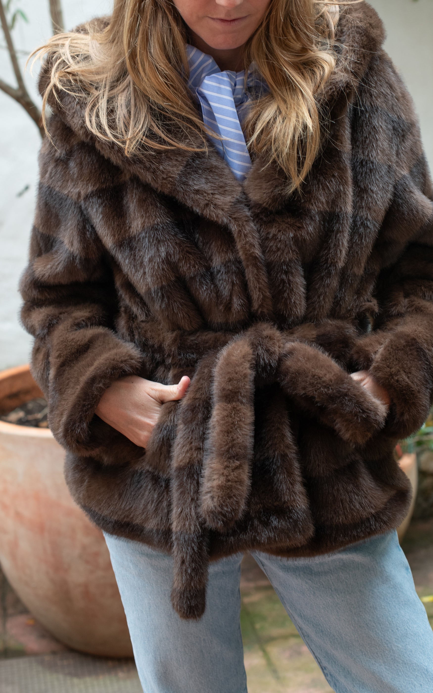 Abrigo peluche con capucha