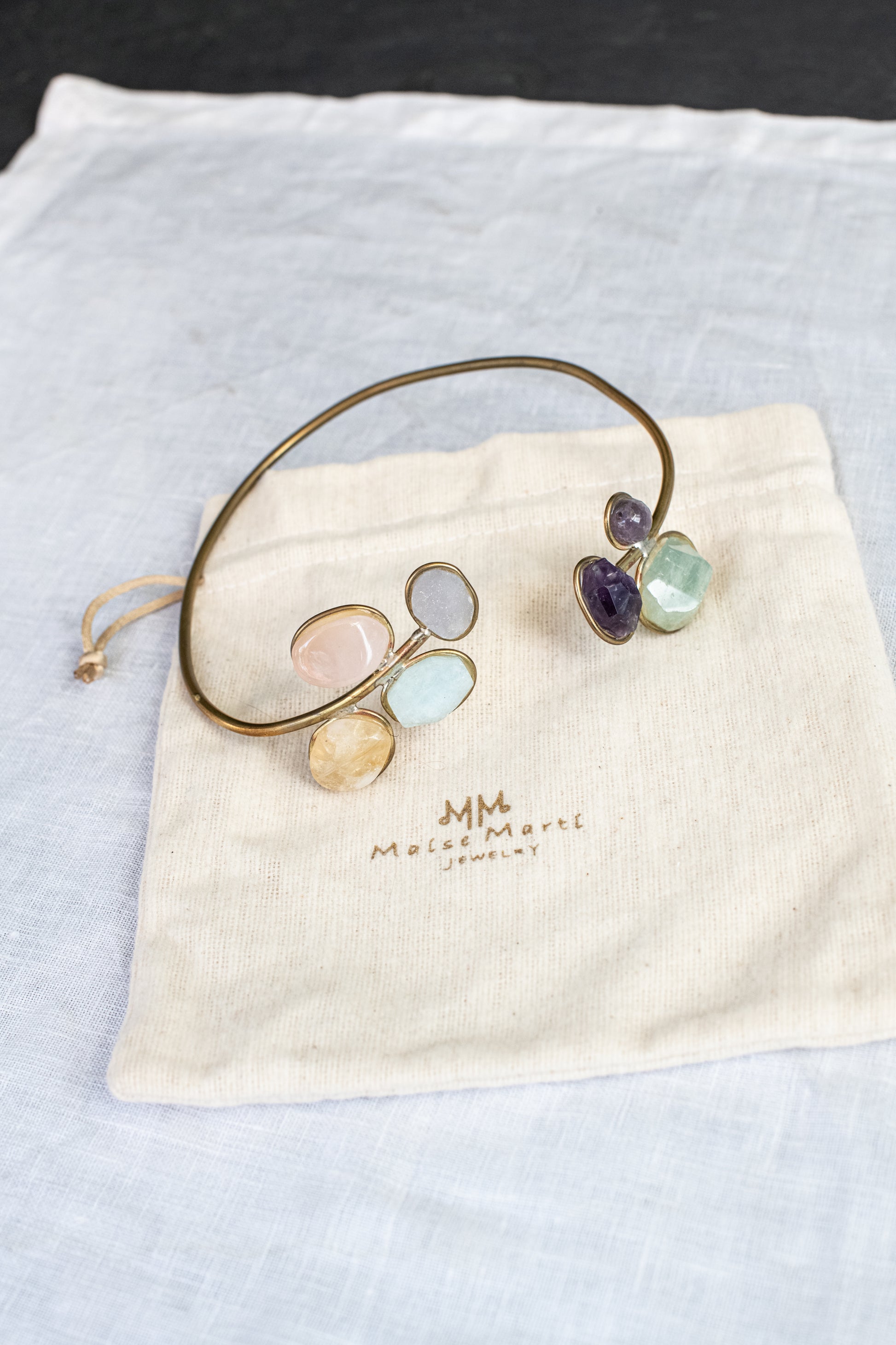 Talla - TU // Muy buen estado, sin signos de uso // Material - Latón bañado en oro y piedras naturales