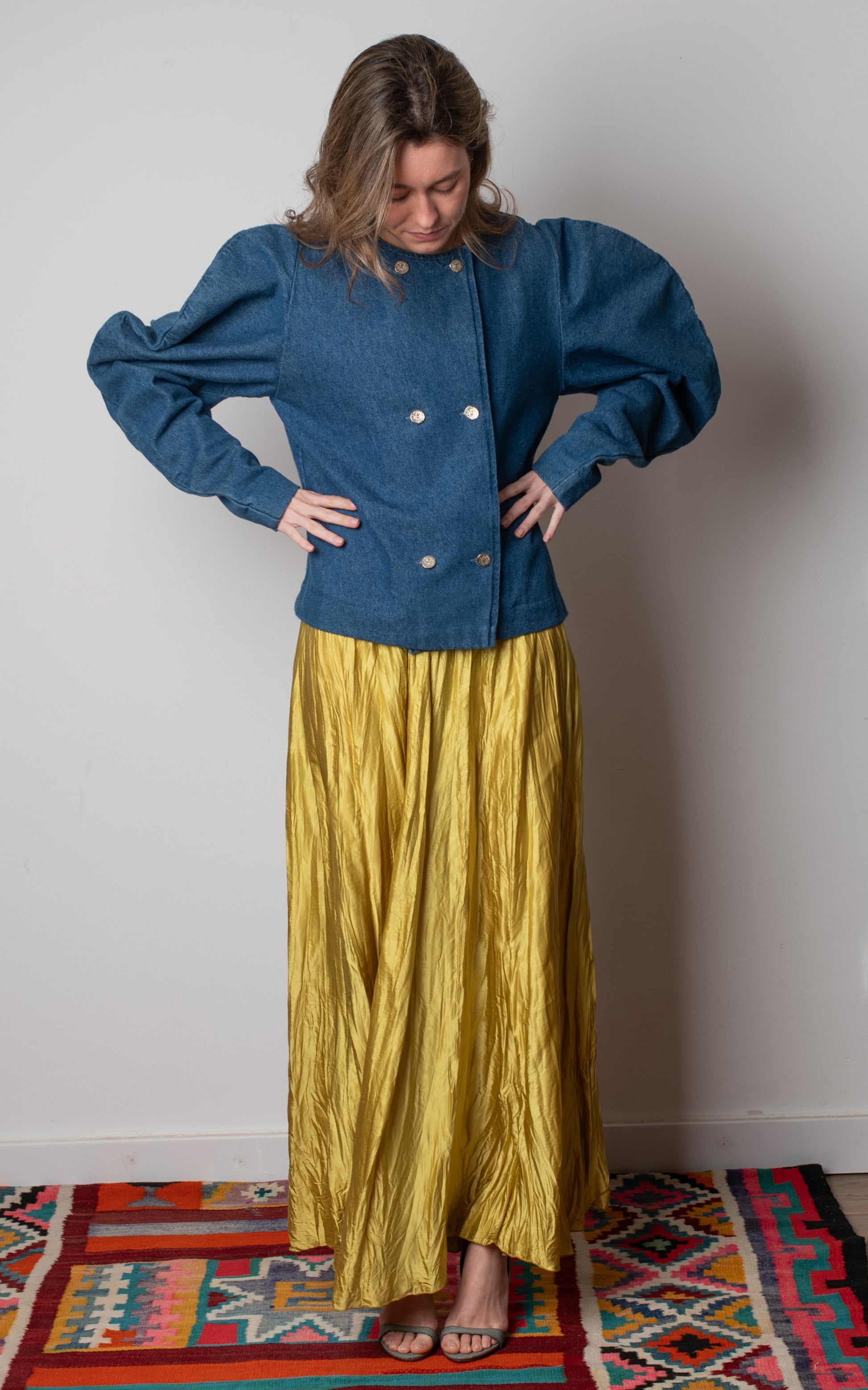 Ahora en tienda por 395€. Chaqueta de manga larga cruzada con doble botonadura y hombros abullonados.