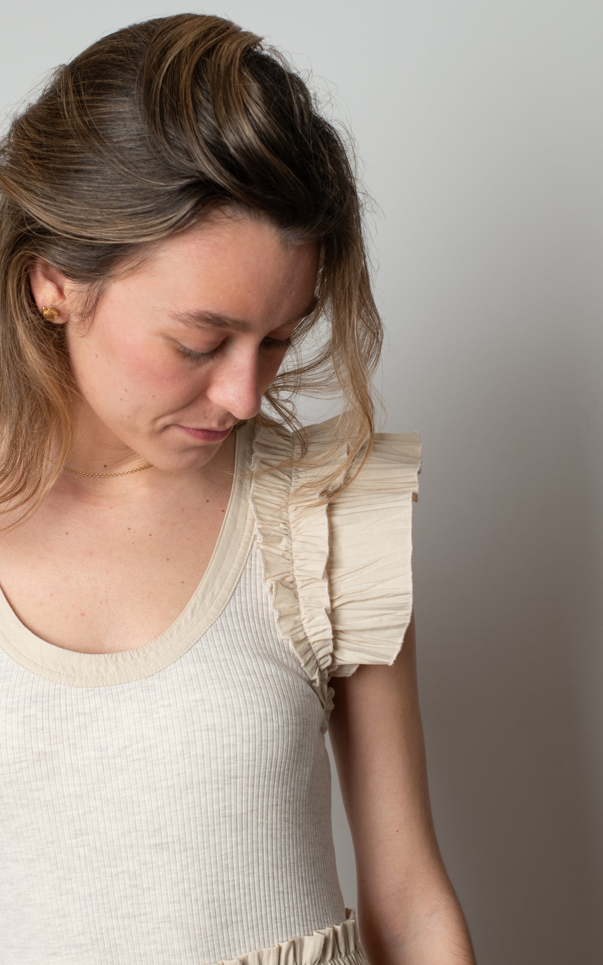 Vestido beige con volantes